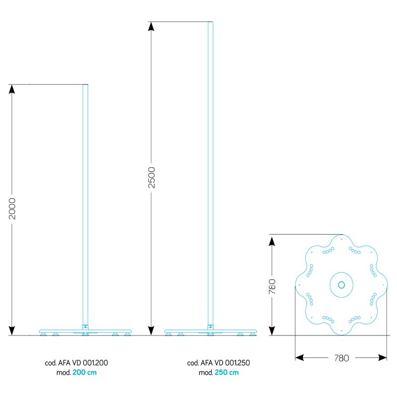 - это инструмент, предназначенный для аквафитнеса, производимый в Италии. Состоит из основания и шеста, имеет 8 присосок, позволяющих надёжно фиксировать шест на дне бассейна. Универсальный инструмент для занятий аквафитнесом. Универсальность заключается как в выборе выполнения упражнений, так и в выборе способа использования. Является чрезвычайно устойчивым, а его малый вес позволяет легко устанавливать и убирать оборудование из бассейна. Доступны две модели по высоте (от 200 и 250 см. для бассейнов с глубинами от 1 м. до 1,7 м. и более 1,7 м.) Дополнительно Вы можете заказать мешки для Аквабоксинга VERTICAL DYNAMIC COMBAT BAG AFA VD 100 и/или тренировочные эспандеры VERTICAL DYNAMIC TRAINING KIT AFA VD 101