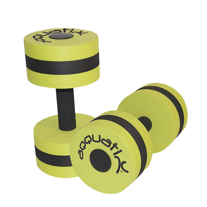 Пара круглых гантелей из вспененного ЭВА, фисташково - чёрного цвета, с мягкой рукояткой.