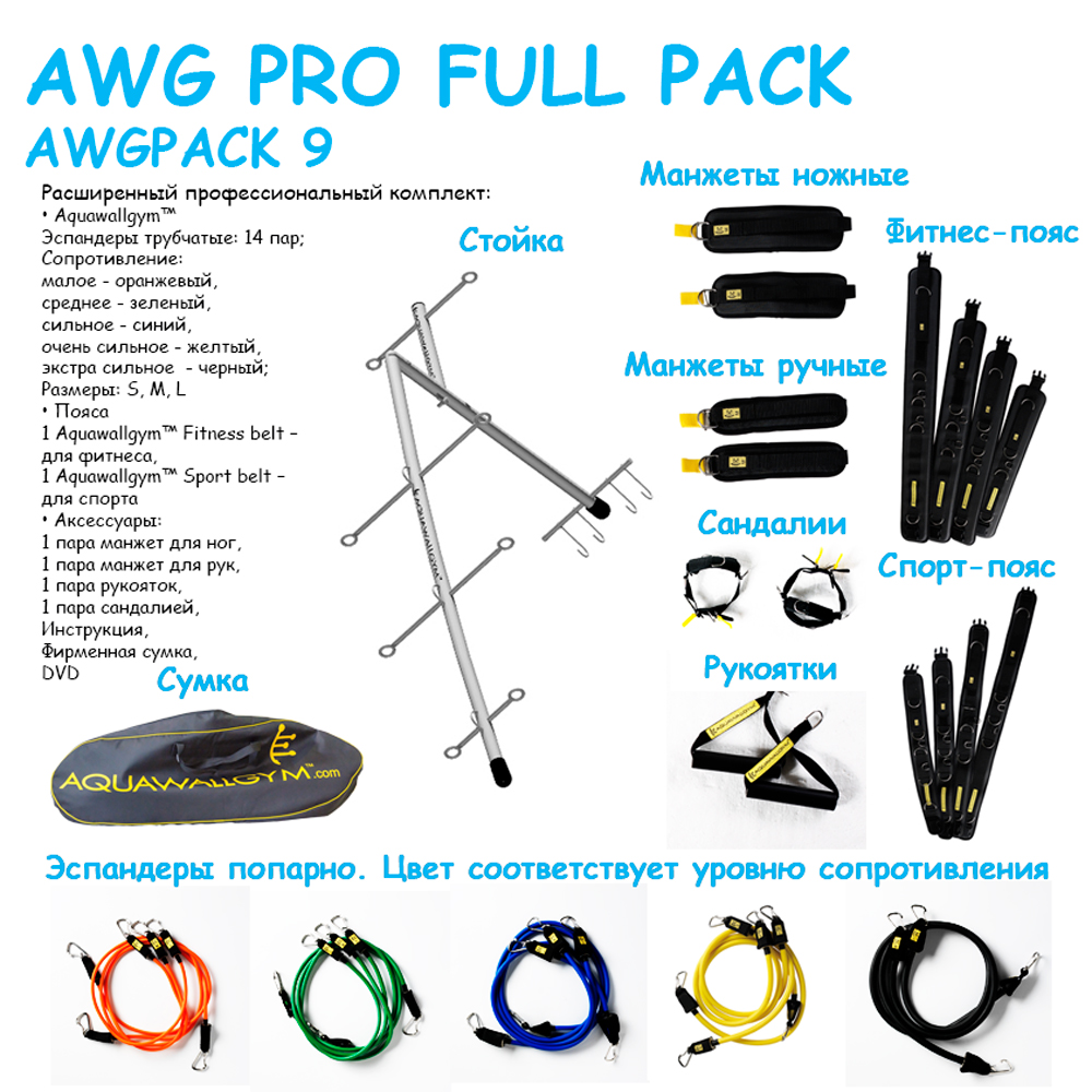 Система эспандерного сопротивления для фитнеса AQUAWALLGYM PRO FULL PACK