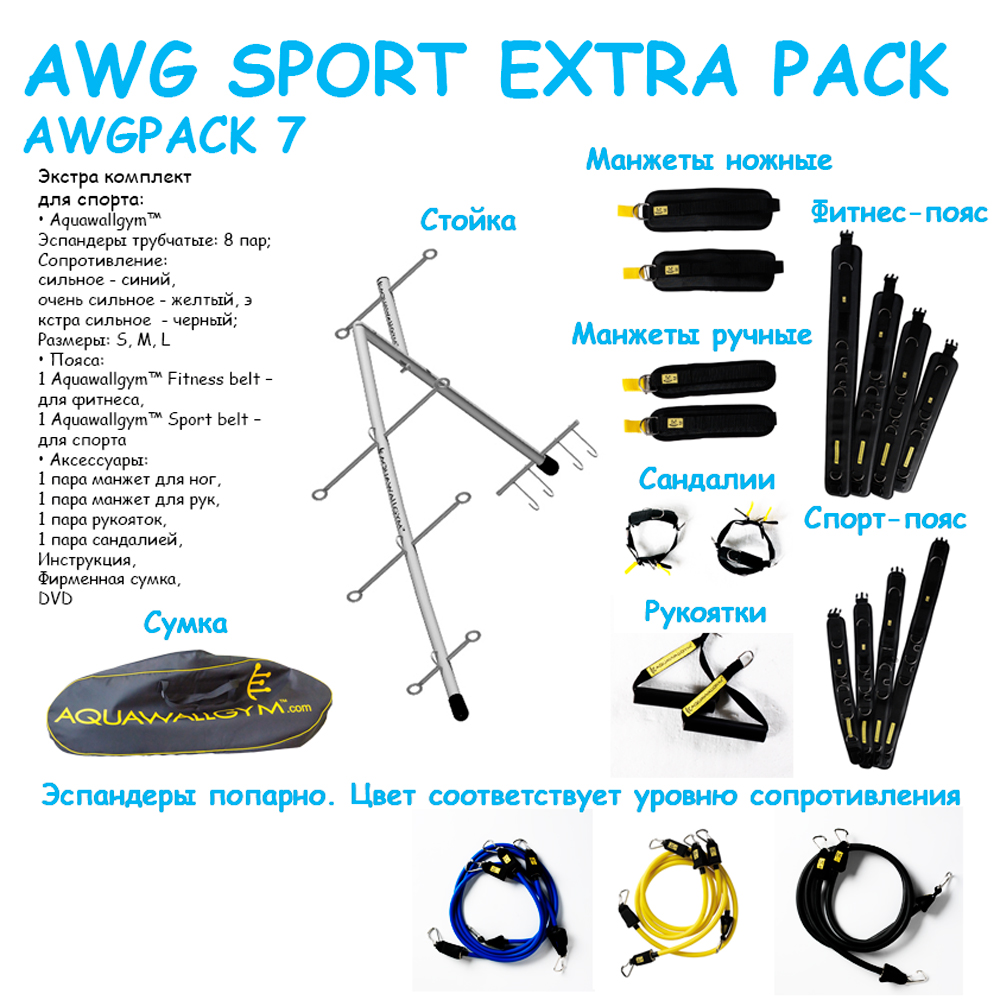 • Пояса: 1 Aquawallgym™ Fitness belt – для фитнеса, 1 Aquawallgym™ Sport belt – для спорта